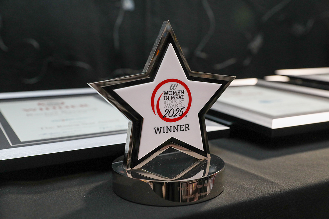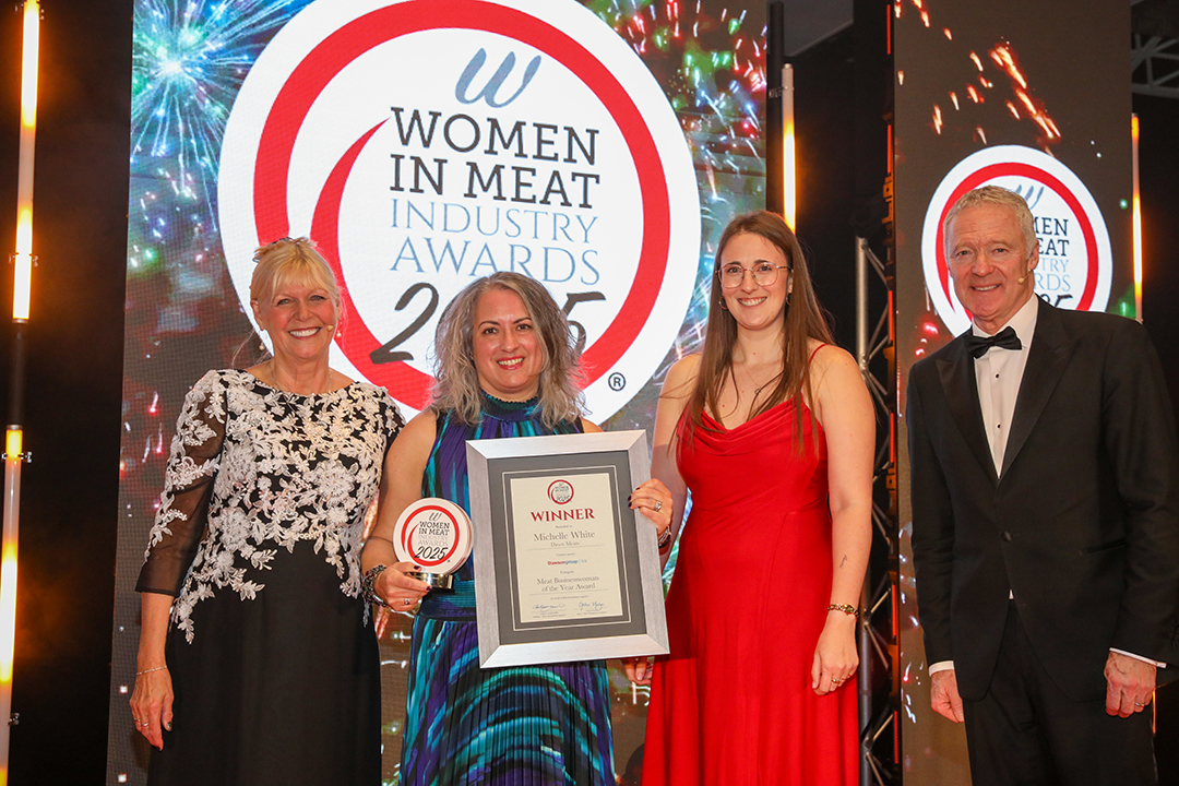 Meat Businesswoman Award – Wholesaling: Winner – Adele Rooney, Kings Fine Cooked Meats. (L-R) Rory Bremner, Tiffany Mitchell of category partner Interfood Technology Ltd, Adele Rooney and Julie Peasgood.