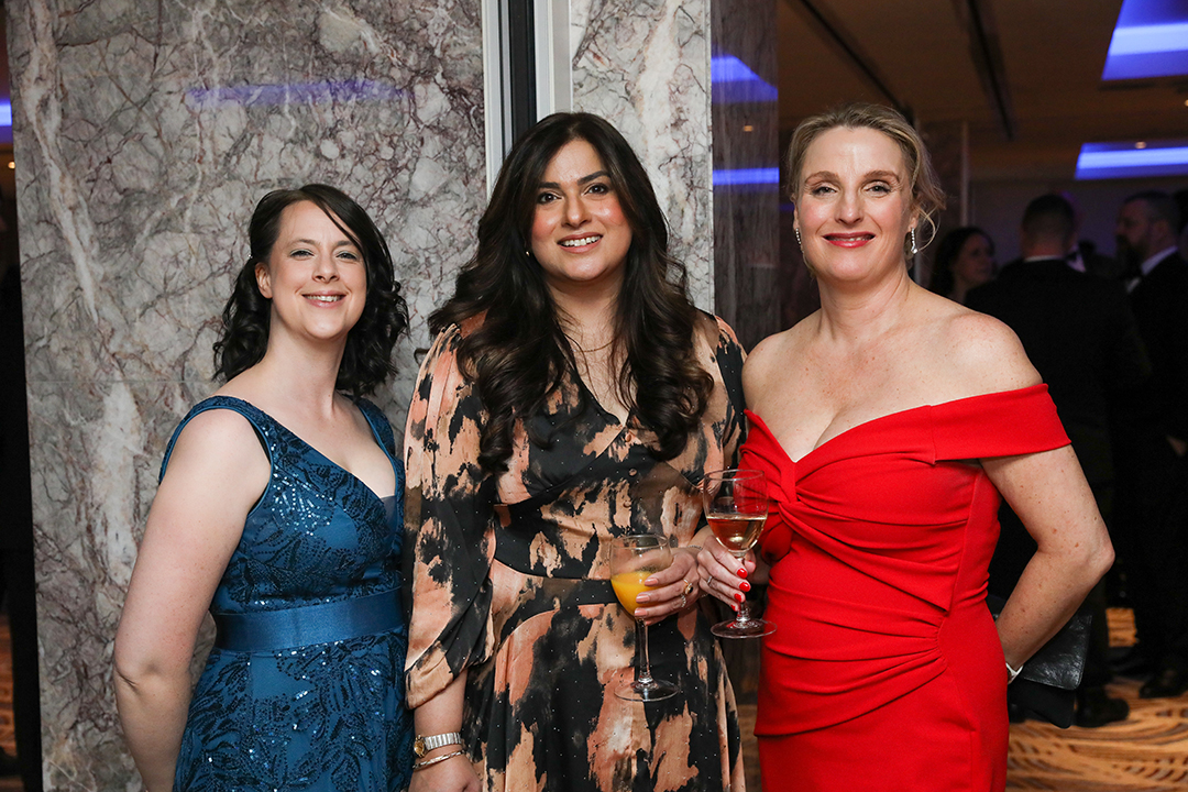 Meat Businesswoman Award – Livestock Procurement & Sustainability: Winner – Katie Major, Danish Crown UK. (L-R) Julie Peasgood, Katie Major, Sarah Merewood of category partner GEA and Rory Bremner.