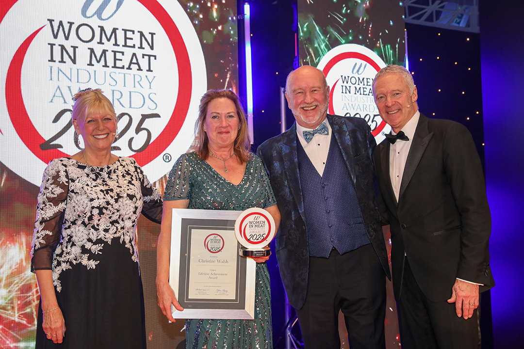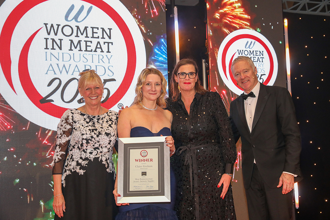 Meat Businesswoman Award – Industry Supplier: Winner – Claire Graham, Dalziel Ltd. (L-R) Julie Peasgood, Claire Graham, Francesca Wyatt of category partner Porky Whites Ltd and Rory Bremner.